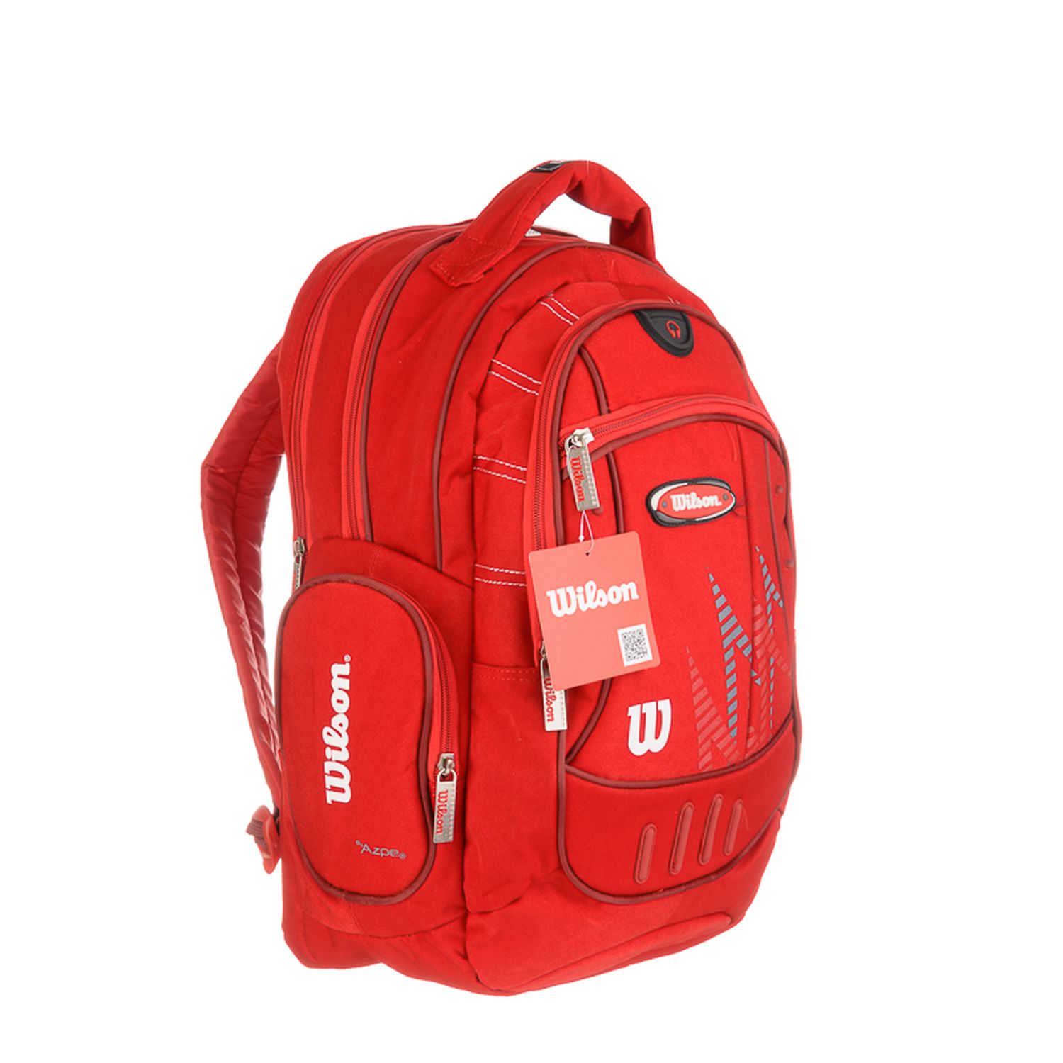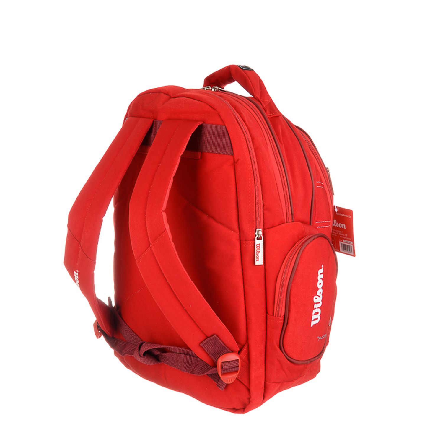 Mochila de espalda Wilson 18" con un compartimiento principal, dos bolsillos frontales con cierre y dos laterales también con cierre. En su parte trasera incluye un bolsillo apto para notebooks. Correas de espalda y manija de agarre acolchonadas.