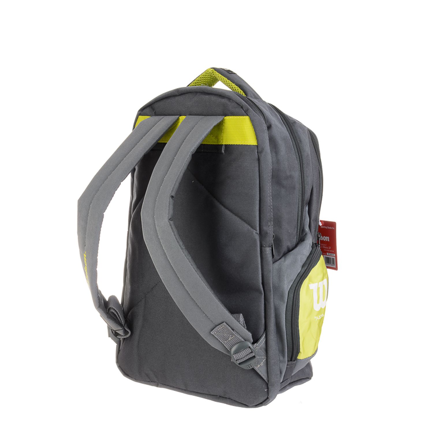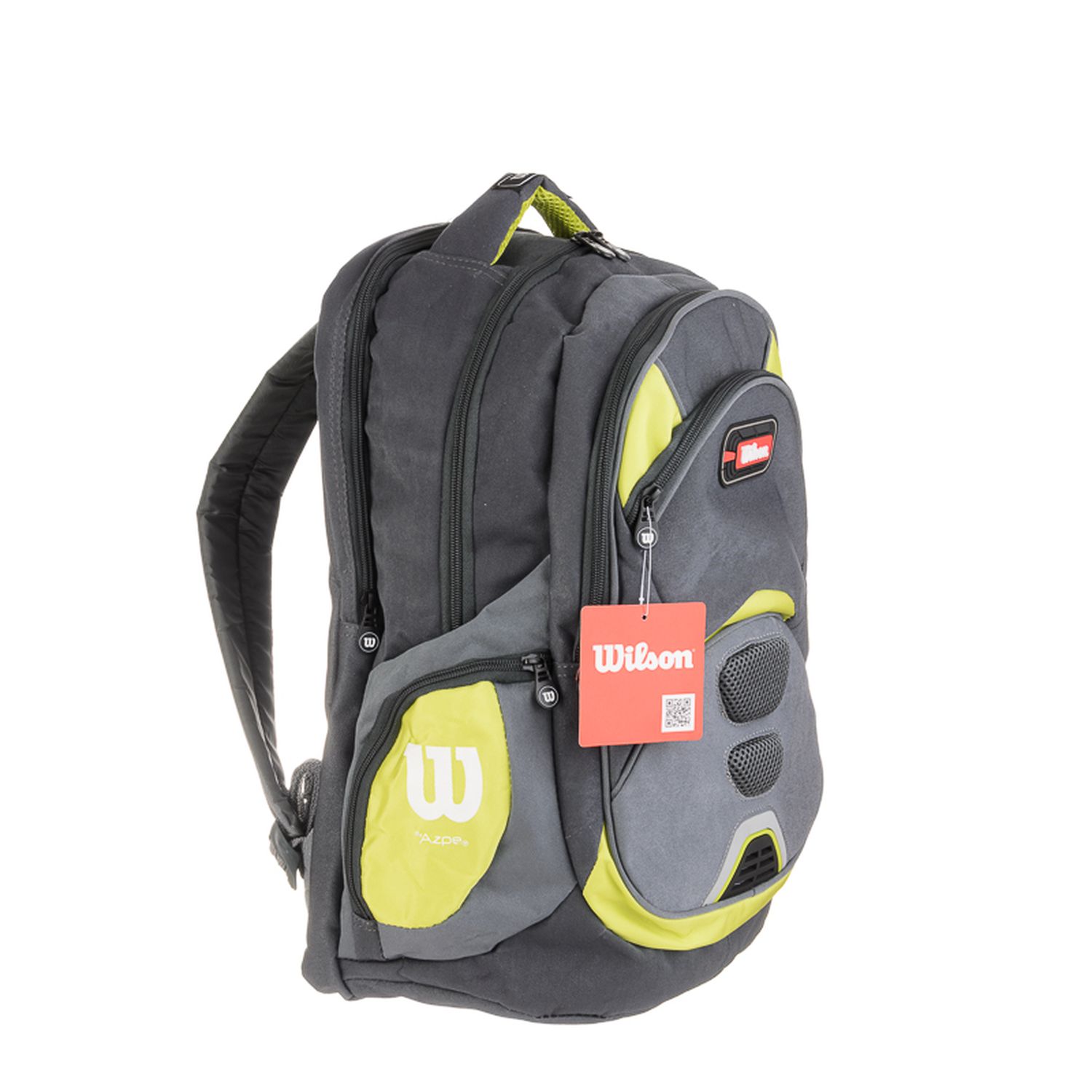 Mochila de espalda Wilson 18" con un compartimiento principal, un amplio bolsillo delantero con cierre, un bolsillo frontal y dos laterales, todos con cierre. En su parte trasera trae un bolsillo apto para notebooks. Correas de espalda y manija de agarre acolchonadas.
