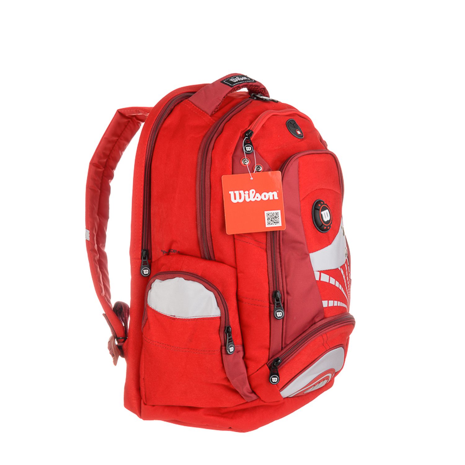 Mochila de espalda Wilson 18" con un compartimiento principal, tres bolsillos delanteros con cierre y dos laterales, también con cierre. En su parte trasera trae un bolsillo apto para notebooks. Correas de espalda y manijas acolchonadas para mayor comodidad. Excelente calidad.